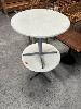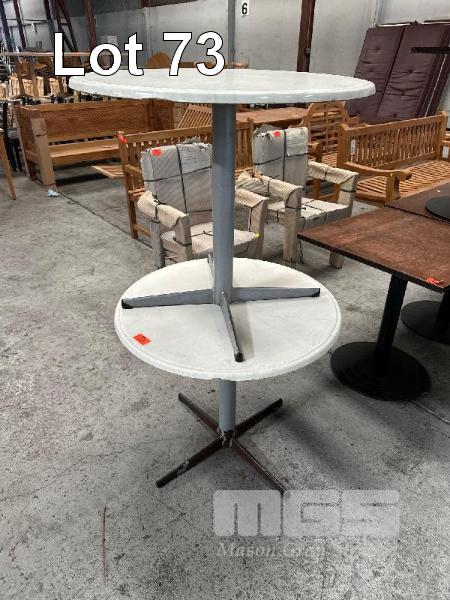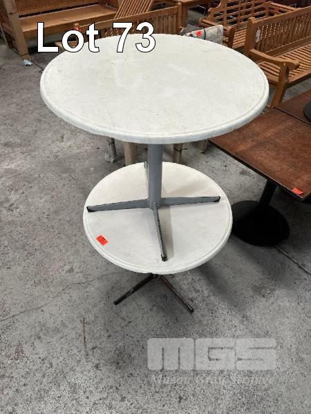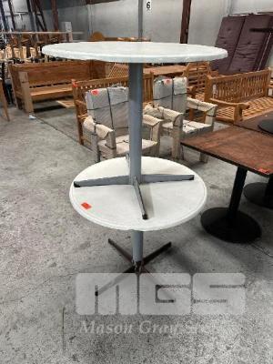 2 x ROUND CAFE TABLES, GREY STEEL BASE, 800mm DIAMETER