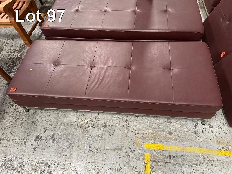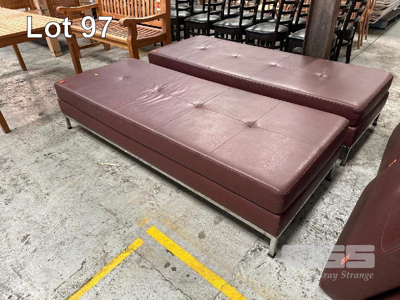 2 x SOFA BENCHES, BURGUNDY VINYL TOP, CHROME BASE