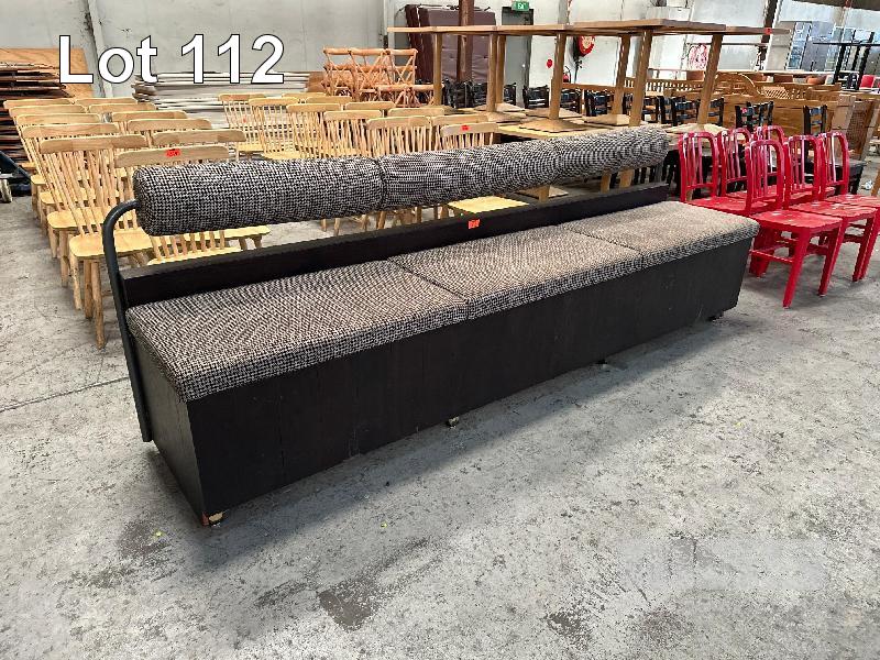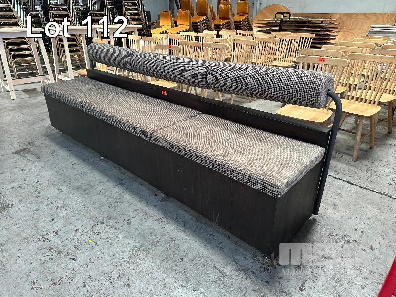 LOUNGE SUITE, DARK TIMBER BASE, GREY CLOTH, 2750mm (W)