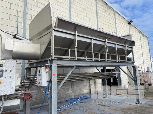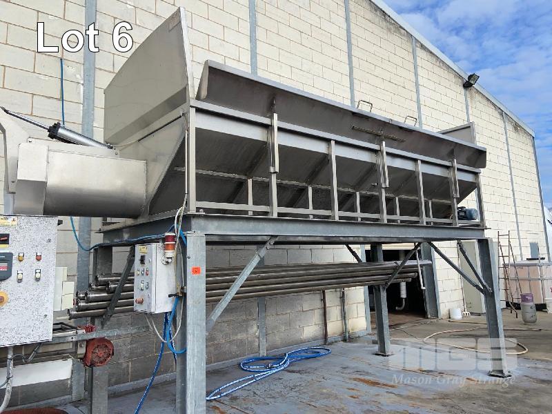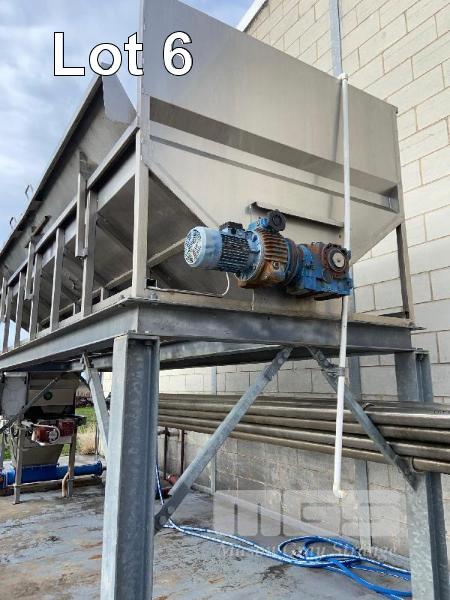 ELEVATED RECEIVAL HOPPER, VELO MOD: VNCB.3 DOM: 2009 S/NO:: V0018439 STAINLESS STEEL CASED HOPPER, PREVIOUS DAMAGE TO WALL, REPAIRED REDUCTION DRIVE AUGER ON UB GALV FRAME, 5 x 2.4 x 2.0m (H)