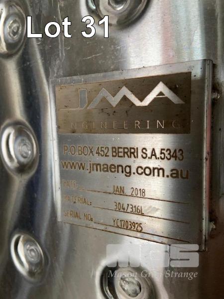 STAINLESS STEEL HOLDING TANK, JMA 2018 MATERIAL 304/316L 5.3KL CAP COOLING PLATE, 2800mm (H) ON FEET S/NO: YC1703925