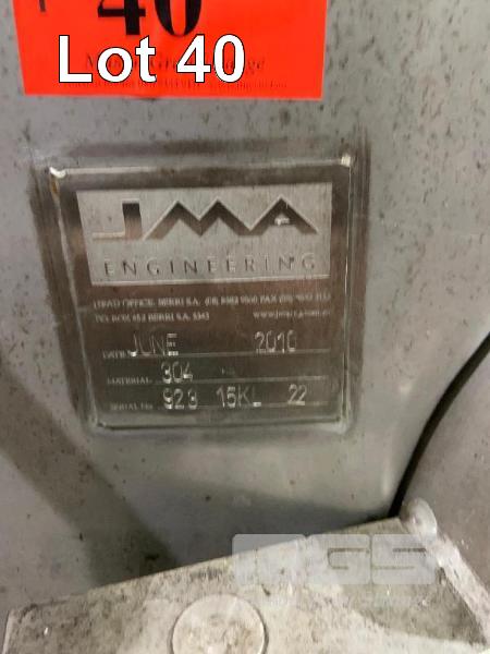 STAINLESS STEEL HOLDING TANK, JMA FEET BASE 2010 STAINLESS STEEL 304 COOLING PLATE S/NO: 92315KL22 4.6m (H) APPROX