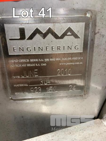 STAINLESS STEEL HOLDING TANK, JMA , FEET BASE 2010 STAINLESS STEEL 304 COOLING PLATE S/NO: 92315KL24 4.6m (H) APPROX