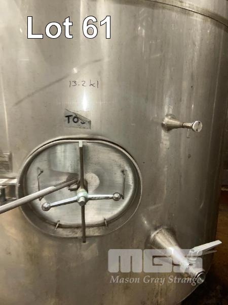 STAINLESS STEEL HOLDING TANK, JMA 2010 12.5kl CAPACITY STAINLESS STEEL 316 S/NO: 90012.5KL4 DIMPLE PLATE 4.5m (H) APPROX ON FEET
