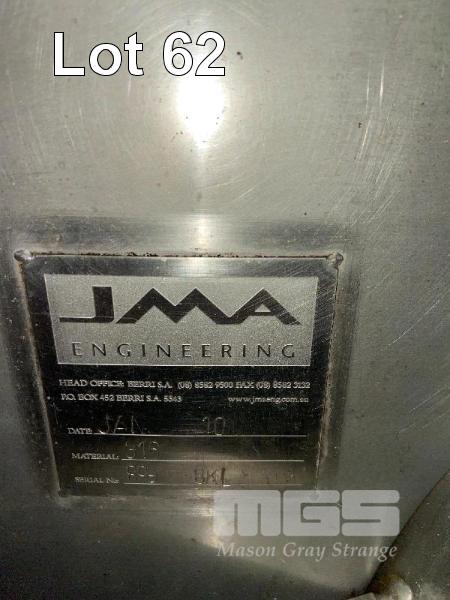 STAINLESS STEEL HOLDING TANK, JMA 2010 8kl CAPACITY STAINLESS STEEL 316 S/NO: 8998KL3 DIMPLE PLATE 4.04m (H) APPROX ON FEET