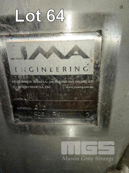STAINLESS STEEL HOLDING TANK, JMA 2010 5kl CAPACITY STAINLESS STEEL 316 S/NO: 8985KL2 DIMPLE PLATE 3.7m (H) APPROX ON FEET