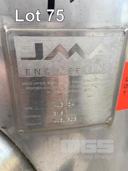 STAINLESS STEEL HOLDING TANK, JMA 2004 3kl CAPACITY STAINLESS STEEL 316 DIMPLING PLATE COOLING KEYSTONE VALVE & FITTINGS 4.6m (H) APPROX ON PLINTH