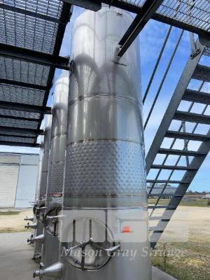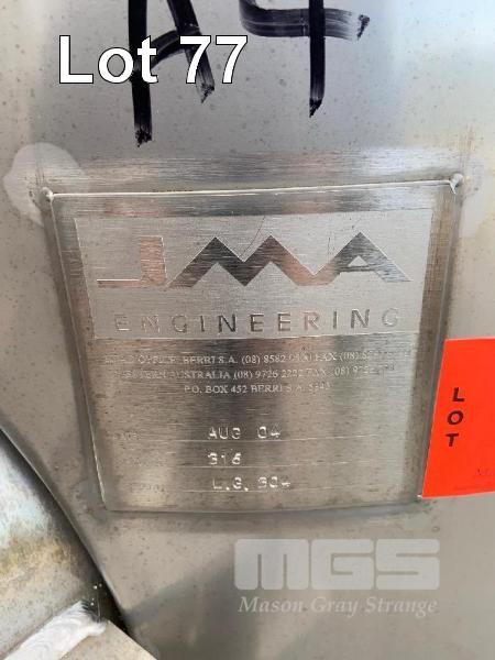 STAINLESS STEEL HOLDING TANK, JMA 2004 3kl CAPACITY STAINLESS STEEL 316 DIMPLING PLATE COOLING KEYSTONE VALVE & FITTINGS 4.6m (H) APPROX ON PLINTH