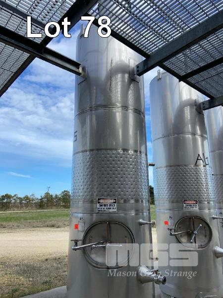 STAINLESS STEEL HOLDING TANK, JMA 2004 3kl CAPACITY STAINLESS STEEL 316 DIMPLING PLATE COOLING KEYSTONE VALVE & FITTINGS 4.6m (H) APPROX ON PLINTH