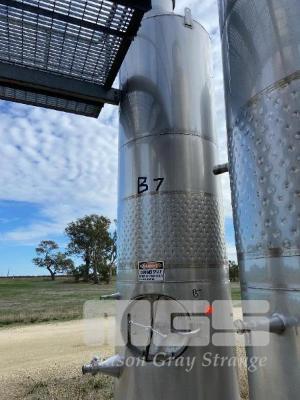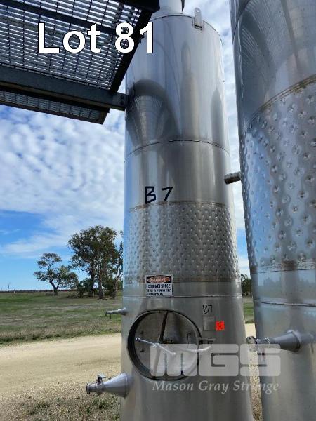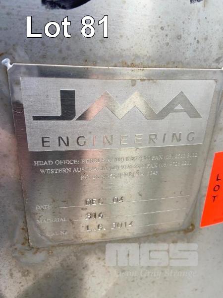 STAINLESS STEEL HOLDING TANK, JMA 2004 3kl CAPACITY STAINLESS STEEL 316 DIMPLING PLATE COOLING KEYSTONE VALVE & FITTINGS 4.6m (H) APPROX ON PLINTH