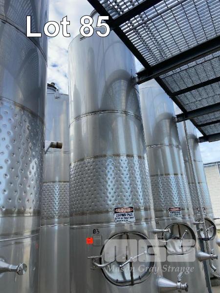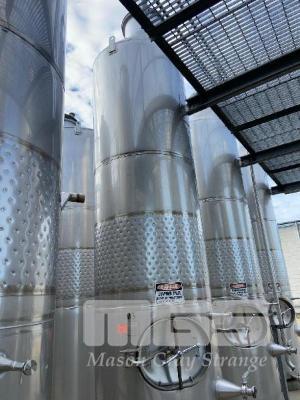 STAINLESS STEEL HOLDING TANK, JMA 2004 3kl CAPACITY STAINLESS STEEL 316 DIMPLING PLATE COOLING KEYSTONE VALVE & FITTINGS 4.6m (H) APPROX ON PLINTH