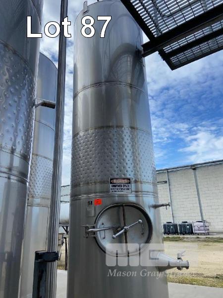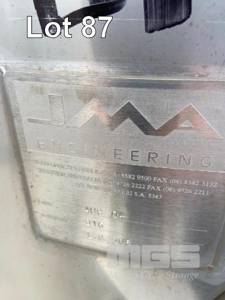 STAINLESS STEEL HOLDING TANK, JMA 2004 3kl CAPACITY STAINLESS STEEL 316 DIMPLING PLATE COOLING KEYSTONE VALVE & FITTINGS 4.6m (H) APPROX ON PLINTH