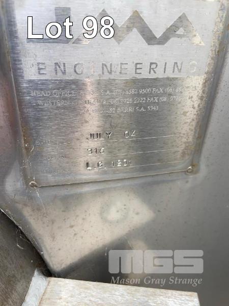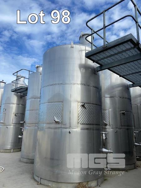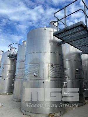 STAINLESS STEEL HOLDING TANK, JMA 2004 12kl CAPACITY STAINLESS STEEL 316 DIMPLING PLATE COOLING KEYSTONE VALVE & FITTINGS 4.6m (H) APPROX ON PLINTH