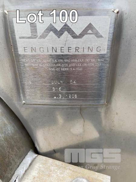 STAINLESS STEEL HOLDING TANK, JMA 2004 12kl CAPACITY STAINLESS STEEL 316 DIMPLING PLATE COOLING KEYSTONE VALVE & FITTINGS 4.6m (H) APPROX ON PLINTH