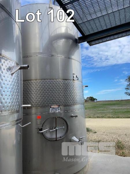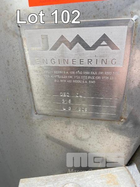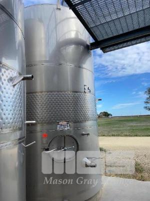 STAINLESS STEEL HOLDING TANK, JMA 2004 12kl CAPACITY STAINLESS STEEL 316 DIMPLING PLATE COOLING KEYSTONE VALVE & FITTINGS 4.6m (H) APPROX ON PLINTH