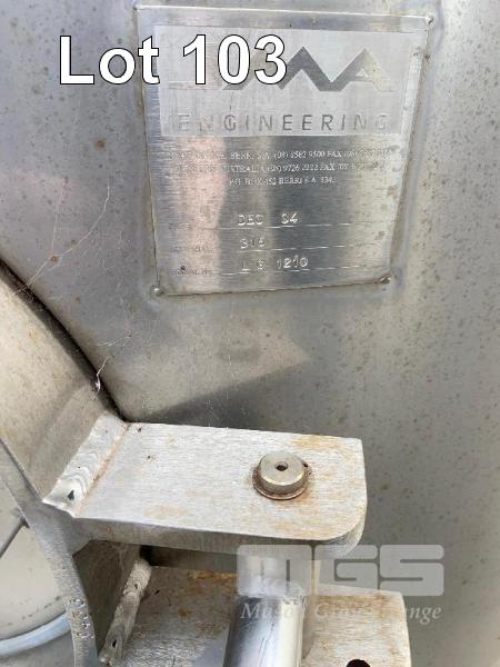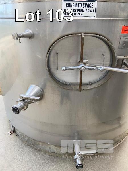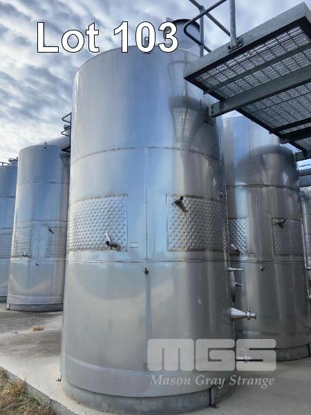 STAINLESS STEEL HOLDING TANK, JMA 2004 12kl CAPACITY STAINLESS STEEL 316 DIMPLING PLATE COOLING KEYSTONE VALVE & FITTINGS 4.6m (H) APPROX ON PLINTH