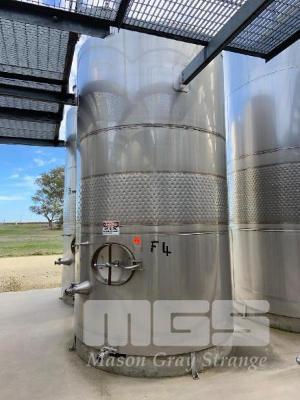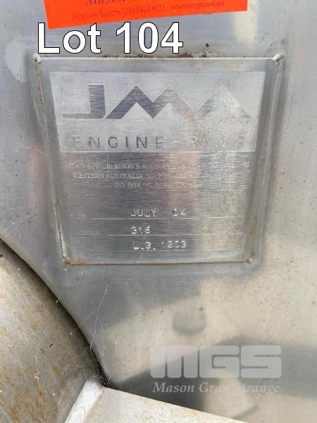 STAINLESS STEEL HOLDING TANK, JMA 2004 12kl CAPACITY STAINLESS STEEL 316 DIMPLING PLATE COOLING KEYSTONE VALVE & FITTINGS 4.6m (H) APPROX ON PLINTH