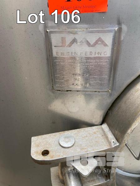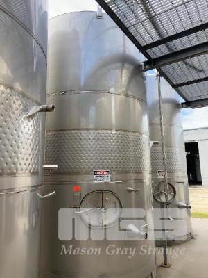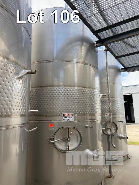 STAINLESS STEEL HOLDING TANK, JMA 2004 12kl CAPACITY STAINLESS STEEL 316 DIMPLING PLATE COOLING KEYSTONE VALVE & FITTINGS 4.6m (H) APPROX ON PLINTH