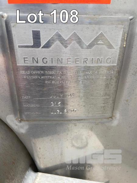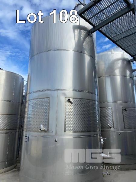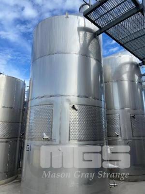 STAINLESS STEEL HOLDING TANK, JMA 2004 24kl CAPACITY STAINLESS STEEL 316 DIMPLING PLATE COOLING KEYSTONE VALVE & FITTINGS 6.0m (H) APPROX ON PLINTH