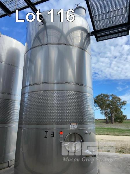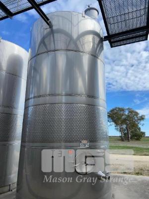 STAINLESS STEEL HOLDING TANK, JMA 2004 24kl CAPACITY STAINLESS STEEL 316 DIMPLING PLATE COOLING KEYSTONE VALVE & FITTINGS 6.0m (H) APPROX ON PLINTH