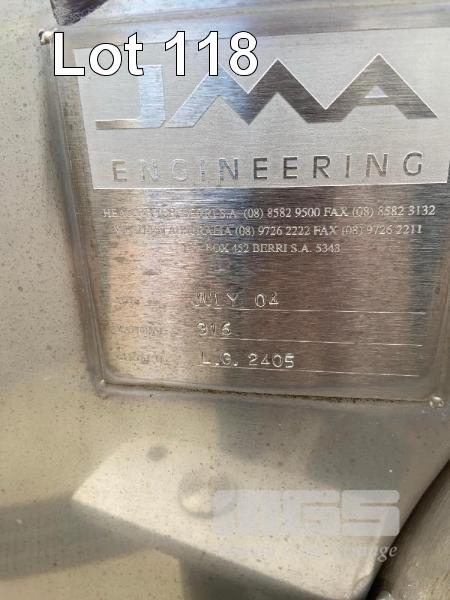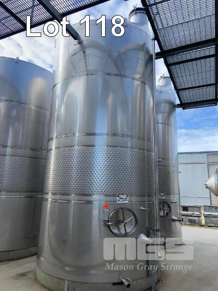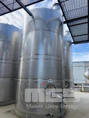 STAINLESS STEEL HOLDING TANK, JMA 2004 24kl CAPACITY STAINLESS STEEL 316 DIMPLING PLATE COOLING KEYSTONE VALVE & FITTINGS 6.0m (H) APPROX ON PLINTH