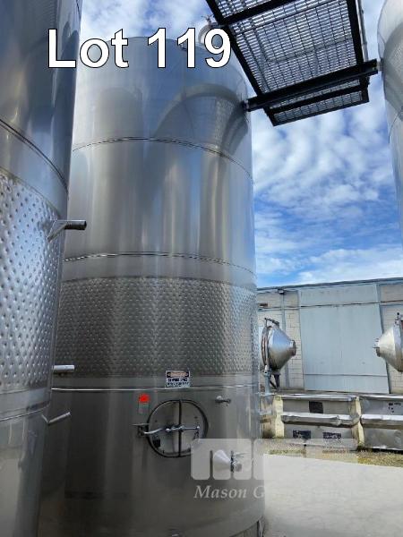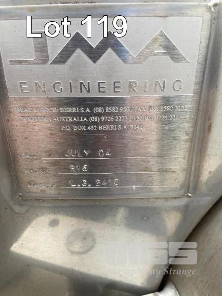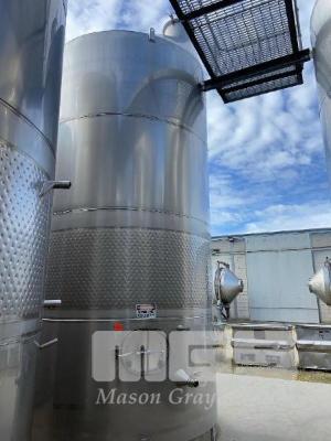 STAINLESS STEEL HOLDING TANK, JMA 2004 24kl CAPACITY STAINLESS STEEL 316 DIMPLING PLATE COOLING KEYSTONE VALVE & FITTINGS 6.0m (H) APPROX ON PLINTH