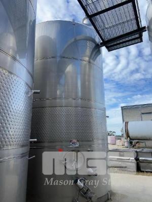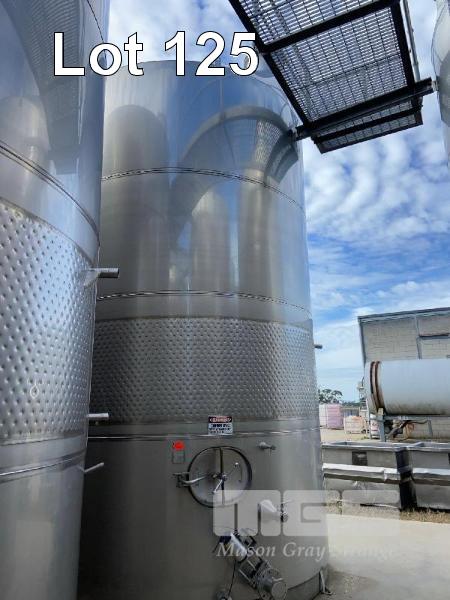 STAINLESS STEEL HOLDING TANK, JMA 2004 35kl CAPACITY STAINLESS STEEL 316 DIMPLING PLATE COOLING KEYSTONE VALVE & FITTINGS 6.0m (H) APPROX ON PLINTH