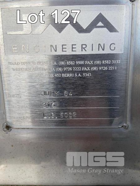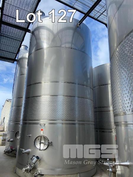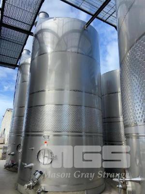 STAINLESS STEEL HOLDING TANK, JMA 2004 52kl CAPACITY STAINLESS STEEL 316 DIMPLING PLATE COOLING KEYSTONE VALVE & FITTINGS 7.5m (H) APPROX ON PLINTH