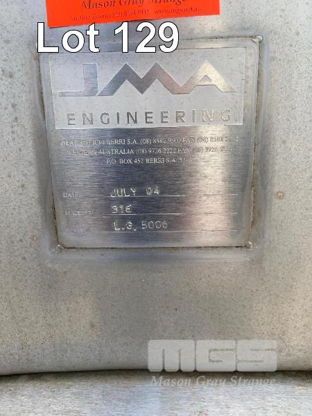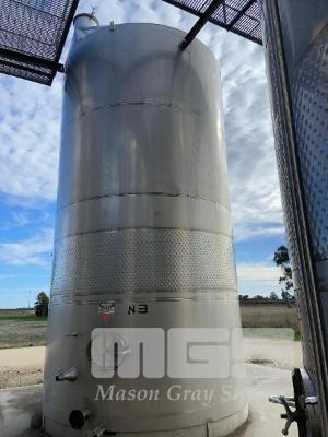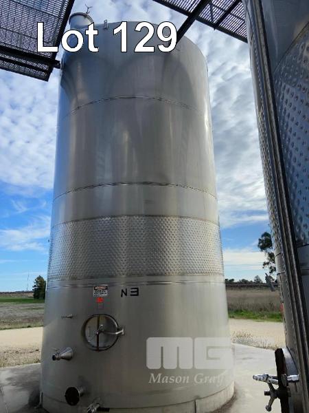 STAINLESS STEEL HOLDING TANK, JMA 2004 52kl CAPACITY STAINLESS STEEL 316 DIMPLING PLATE COOLING VALVES & FITTINGS 7.5m (H) APPROX ON PLINTH