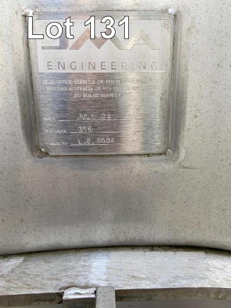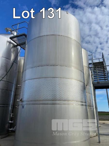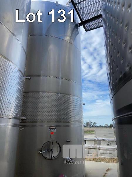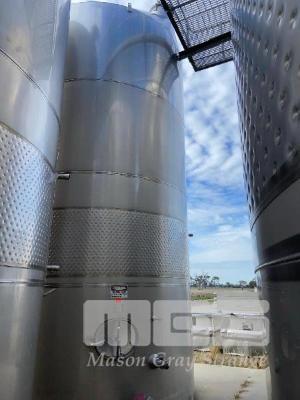 STAINLESS STEEL HOLDING TANK, JMA 2004 52kl CAPACITY STAINLESS STEEL 316 DIMPLING PLATE COOLING VALVES & FITTINGS 7.5m (H) APPROX ON PLINTH