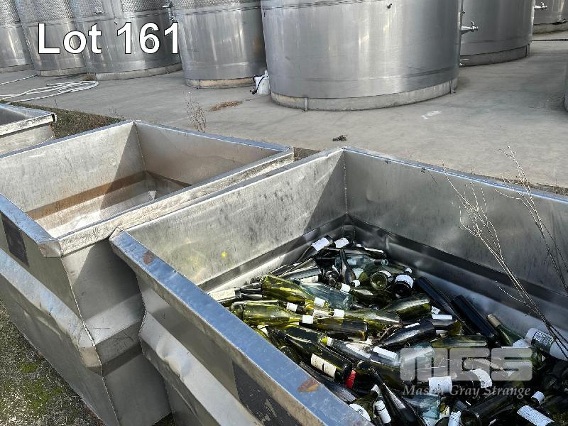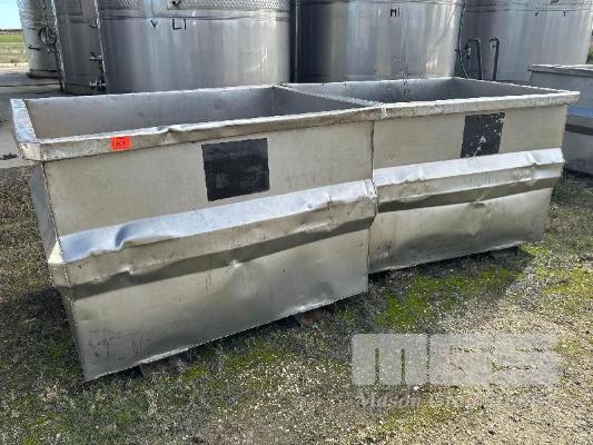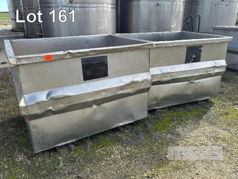 2 x STAINLESS STEEL GRAPE BINS, 1600 x 1200 x 1000mm APPROX WITH FORK POCKETS (AVERAGE)