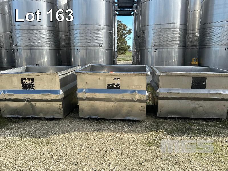 3 x STAINLESS STEEL GRAPE BINS,