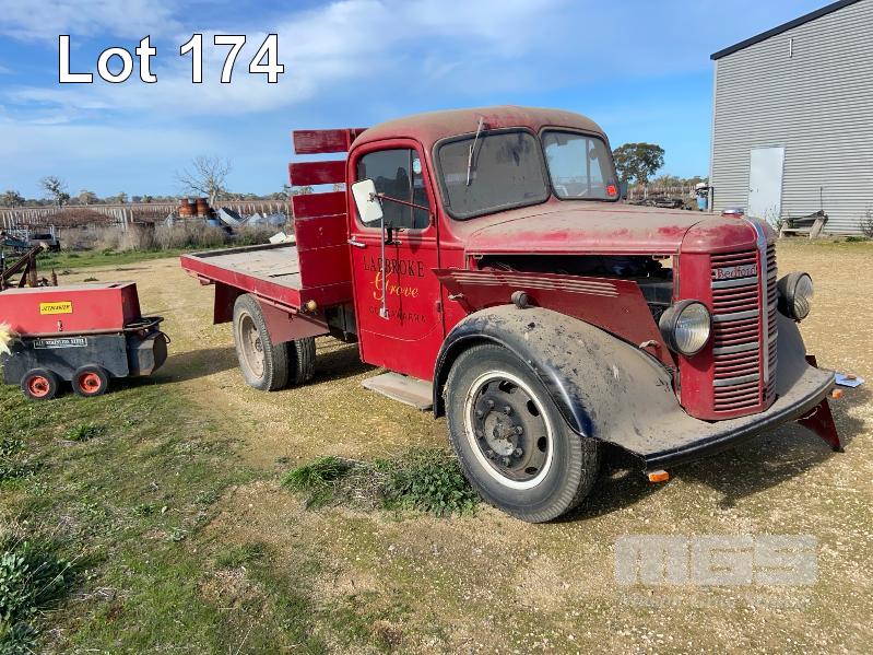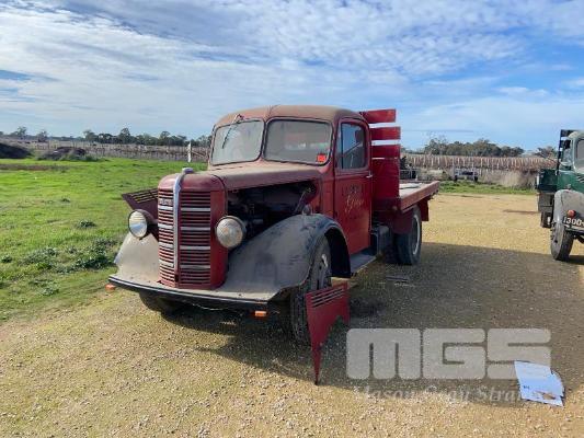 CIRCA 1950'S BEDFORD MSC TRAY TOP TRUCK CHASSIS NO: MSC113900 6 CYLINDER PETROL TIMBER TRAY, STEEL SIDE IN FAIR CONDITION (STORED) HAS BEEN PAINTED