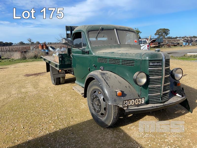 CIRCA 1950'S BEDFORD MLZ TRAY TOP TRUCK CHASSIS NO: MLZ153397 6 CYLINDER PETROL TIMBER TRAY, STEEL SIDE IN FAIR CONDITION (STORED) HAS BEEN PAINTED