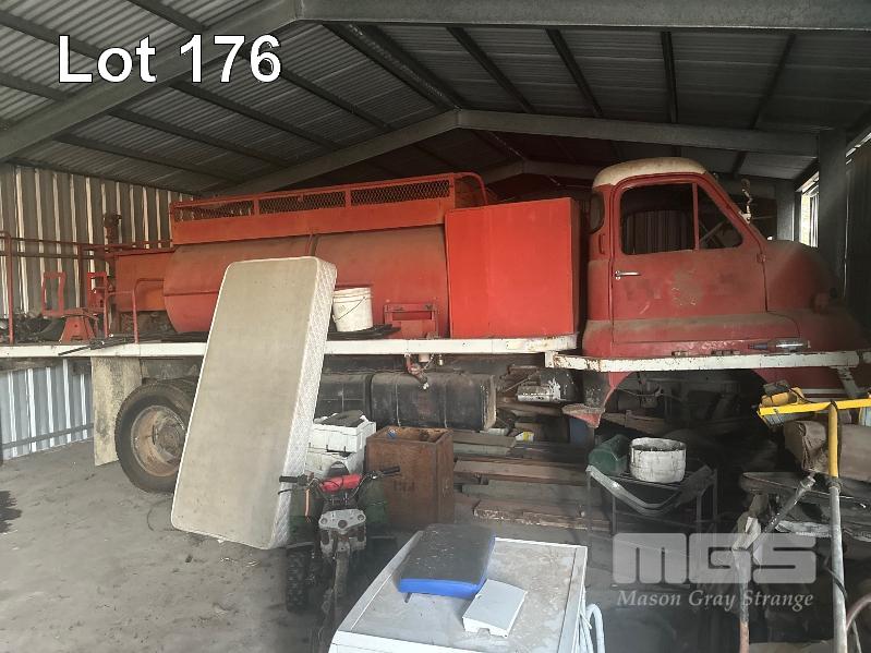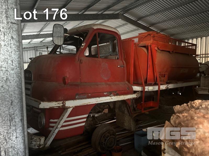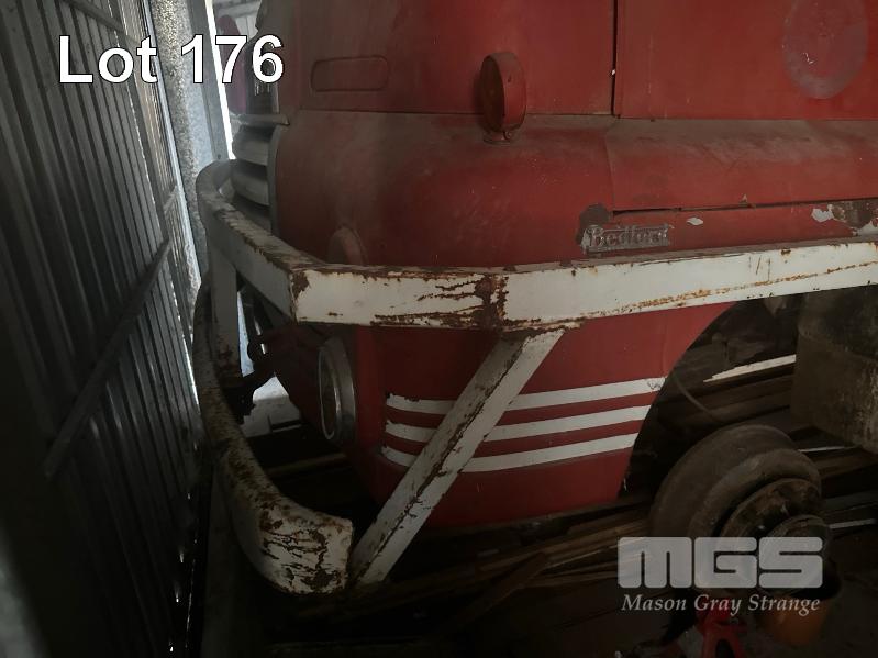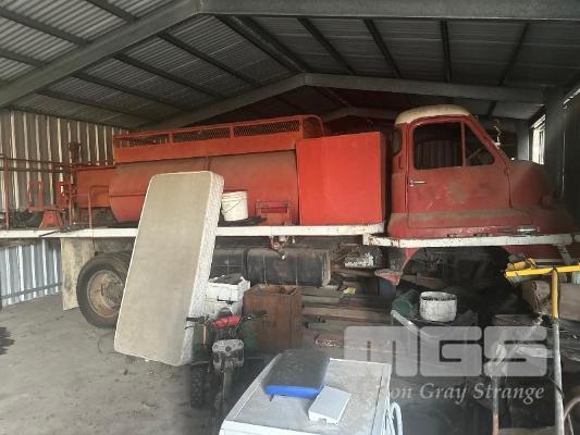 2 x BEDFORD TRUCKS, CIRCA 50'S WITH PARTS, 1 X BEDFORD FIRE TRUCK , POSSIBLE S TYPE NO FRONT WHEELS 1 X BEDFORD TRAY TOP , POSSIBLE K SERIES GS COMPLETE ( HAS BEEN PAINTED) BOTH LOCATED IN THE PENOLA TOWNSHIP