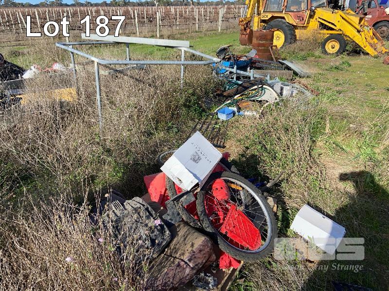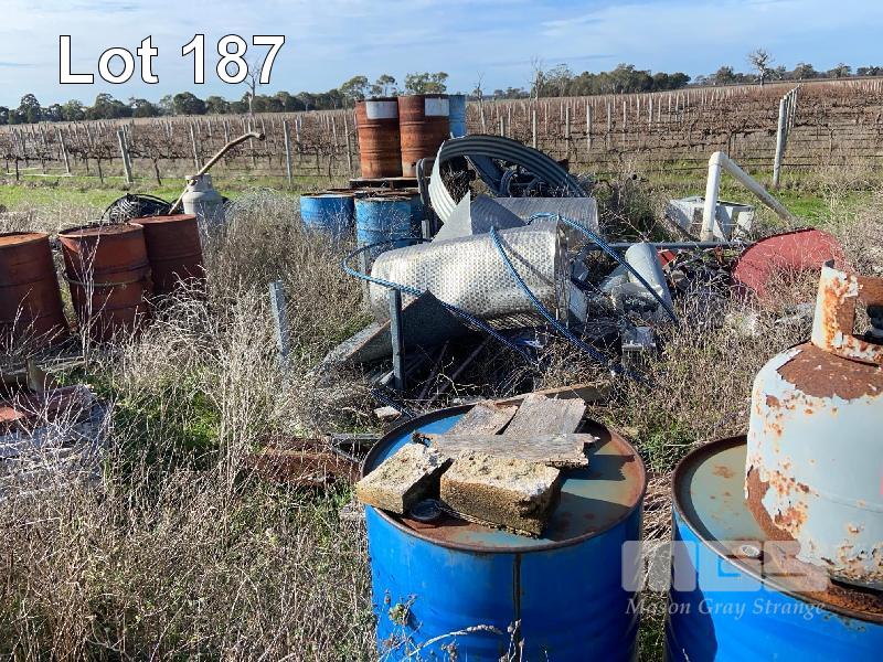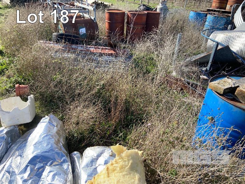 SCRAP PILE STAINLESS STEEL COMPONENTS, GALV IRON DRUMS, FRAMES, WHEELS, ETC