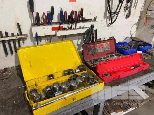 3/4 & 1/2 SOCKET SETS, TORQUE WRENCH, DRIVERS, SPANNERS, HARDWARE, TC CONTENTS BENCH