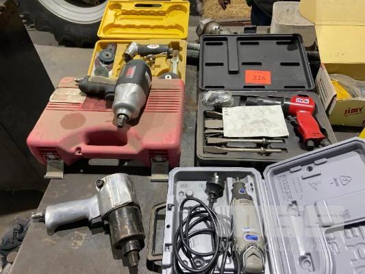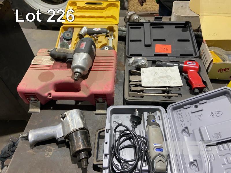ASSORTED POWER & AIR TOOLS INCLUDING IMPACT GUNS, AIR CHIPPERS, JIGSAW, SAW, DISC SANDER, BLOW TORCH, ETC