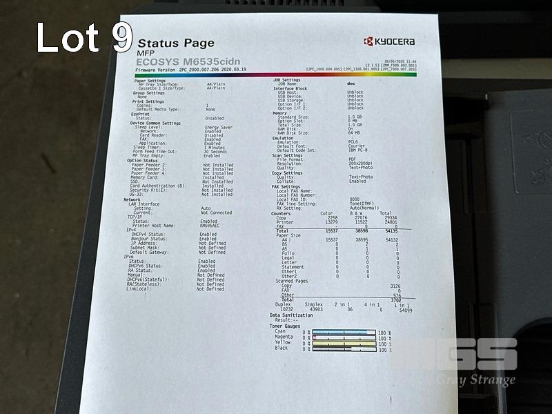 PRINTER, KYOCERA ECOSYS M6535cidn COLOUR LASER MULTIFUNCTION, ADF, USB, NETWORK, 15,537 COLOUR & 38,598 B&W PAGES (TEST PAGE ATTACHED) S/N:V6F7601224