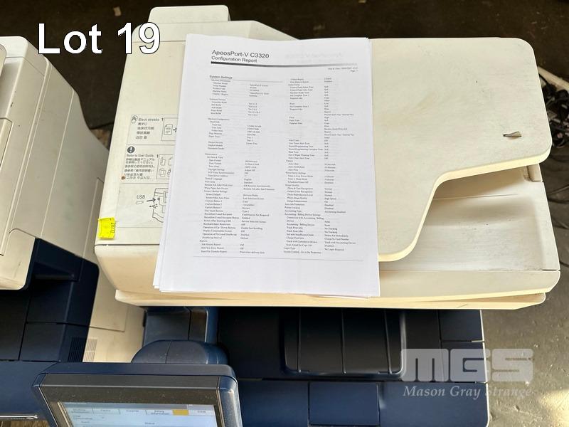 PRINTER, FUJI XEROX APEOSPORT-V C3320 COLOUR LASER MULTIFUNCTION, ADF, USB, NETWORK, 2,847 COLOUR & 706 B&W PAGES (TEST PAGE ATTACHED) S/N:301204