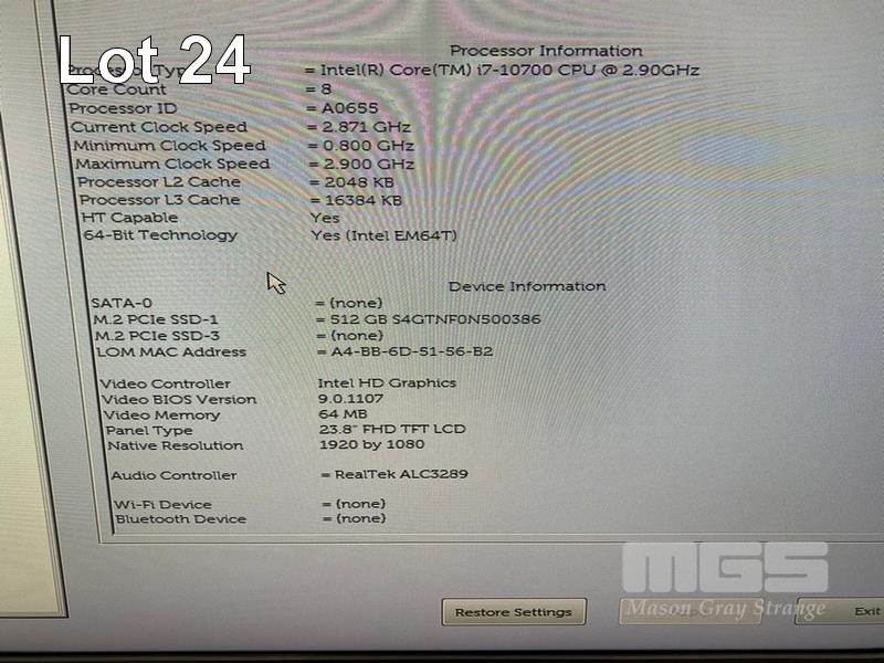 ALL-IN-ONE PC, DELL OPTIPLEX 7480, CORE i7 10700 (10TH GEN) @ 2.9GHz, 16GB DDR4 RAM, 512GB NVMe M.2 SSD, INBUILT 23.8" FHD WIDESCREEN (1920x1080), INTEL HD VIDEO, WEBCAM, 5 x USB, 1 x USB-C, WINDOWS 11 HOME INSTALLED, KEYBOARD & MOUSE S/N:4XL1X63