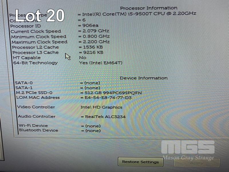 DESKTOP PC, DELL OPTIPLEX 3070 MICRO, CORE i5 9500T (9TH GEN) @ 2.2GHz, 8GB DDR4 RAM, 512GB NVMe M.2 SSD, INTEL HD VIDEO, 6 x USB, WINDOWS 11 HOME INSTALLED & POWER SUPPLY (65W) (NO KEYBOARD, NO MOUSE) S/N:93WLB03