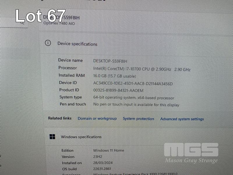 ALL-IN-ONE PC, DELL OPTIPLEX 7480, CORE i7 10700 (10TH GEN) @ 2.9GHz, 16GB DDR4 RAM, 512GB NVMe M.2 SSD, INBUILT 23.8" FHD WIDESCREEN (1920x1080), INTEL HD VIDEO, WEBCAM, 5 x USB, 1 x USB-C, WINDOWS 11 HOME INSTALLED, KEYBOARD & MOUSE S/N:4XL3X63