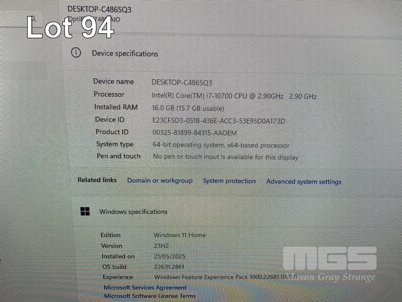 ALL-IN-ONE PC, DELL OPTIPLEX 7480, CORE i7 10700 (10TH GEN) @ 2.9GHz, 16GB DDR4 RAM, 512GB NVMe M.2 SSD, INBUILT 23.8" FHD WIDESCREEN (1920x1080), INTEL HD VIDEO, WEBCAM, 5 x USB, 1 x USB-C, WINDOWS 11 HOME INSTALLED, KEYBOARD & MOUSE S/N:4XK6X63