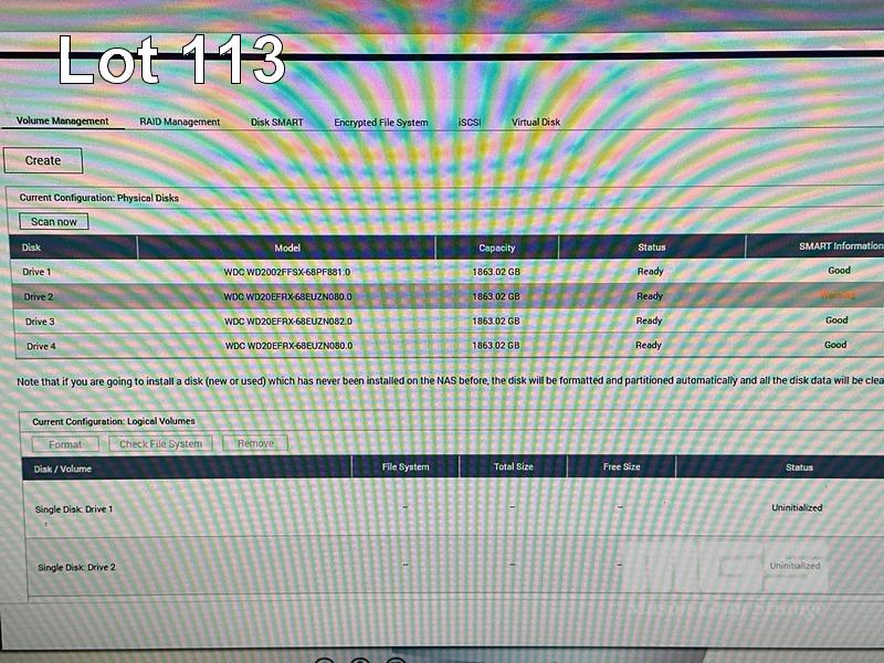 QNAP TS-421 4-BAY NETWORK ATTACHED STORAGE, 4 x 2TB HDD (NOTE: 1 x DRIVE SMART WARNING MESSAGE) S/N:Q145B06380