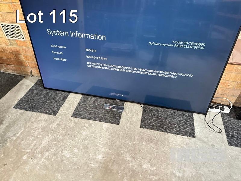 SONY BRAVIA 75" 4K SMART LED TV, KD-75X8500D WITH REMOTE (NO STAND) (NOTE: SMALL SCRATCH ON SCREEN) S/N:7004913