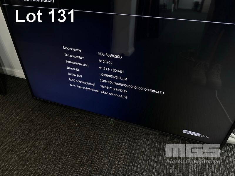 SONY BRAVIA 55" HD LCD TV, KDL-55W650D (NO REMOTE, NO STAND) S/N:8120702