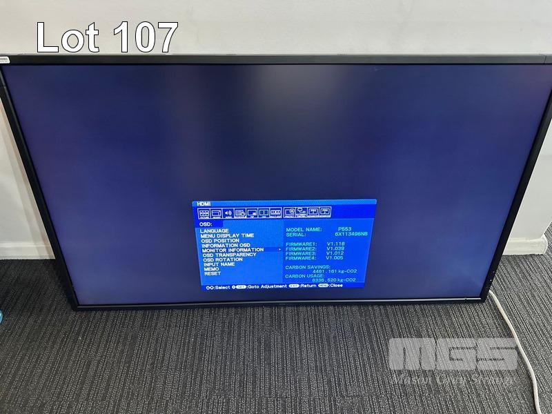 MONITOR, NEC MULTISYNC P553 55" COMMERCIAL LCD DISPLAY (NO REMOTE, NO STAND) S/N:6X113496NB