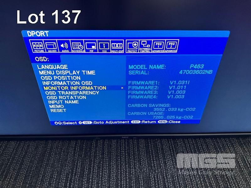MONITOR, NEC MULTISYNC P463 46" COMMERCIAL LCD DISPLAY (NO REMOTE, NO STAND) S/N:47003602NB