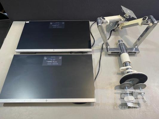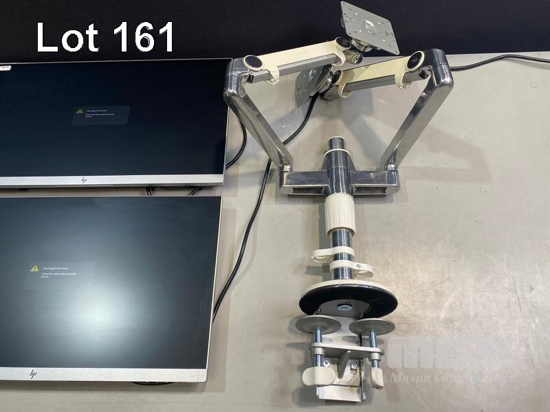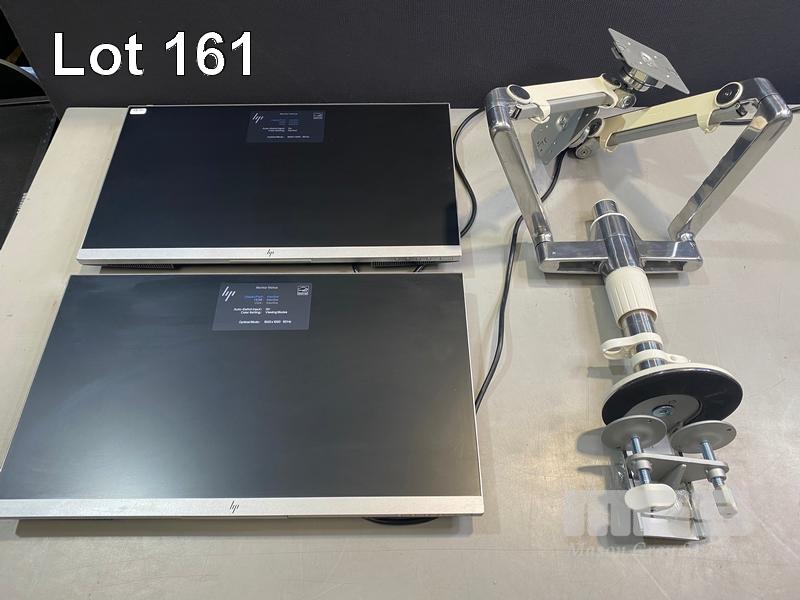 2 x MONITORS, HP ELITEDISPLAY E243 23.8" LED-BL WIDESCREEN, HDMI, DISPLAYPORT, VGA (WITH CABLES) (NO HDMI CABLE) WITH HUMANSCALE DUAL DESK MOUNT MONITOR ARM